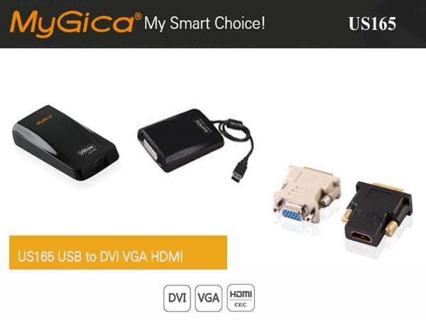 MyGica U165 Ushow converter enables you to connect any monitor( LCD or LED ), projector, Television, etc., to your