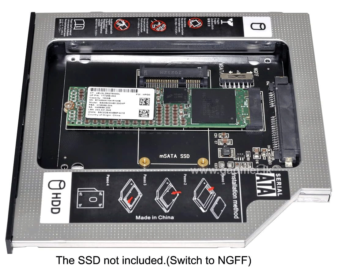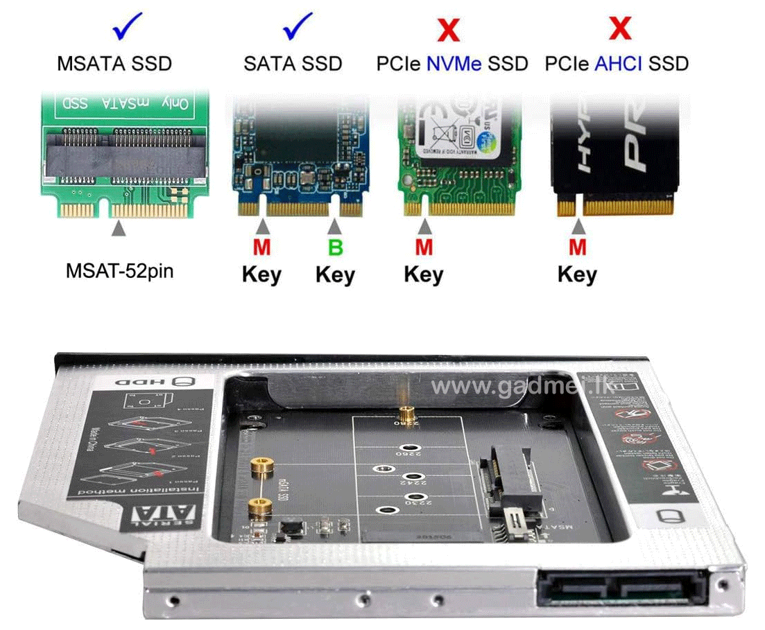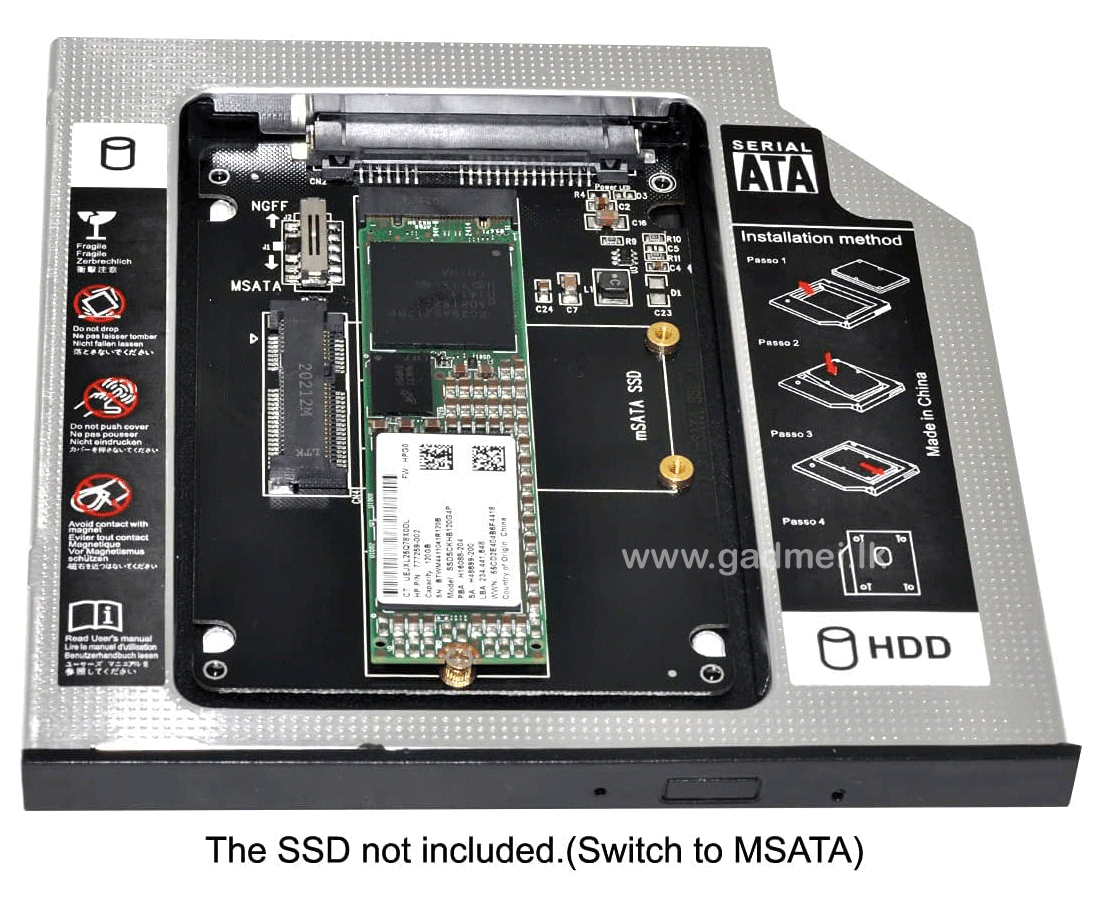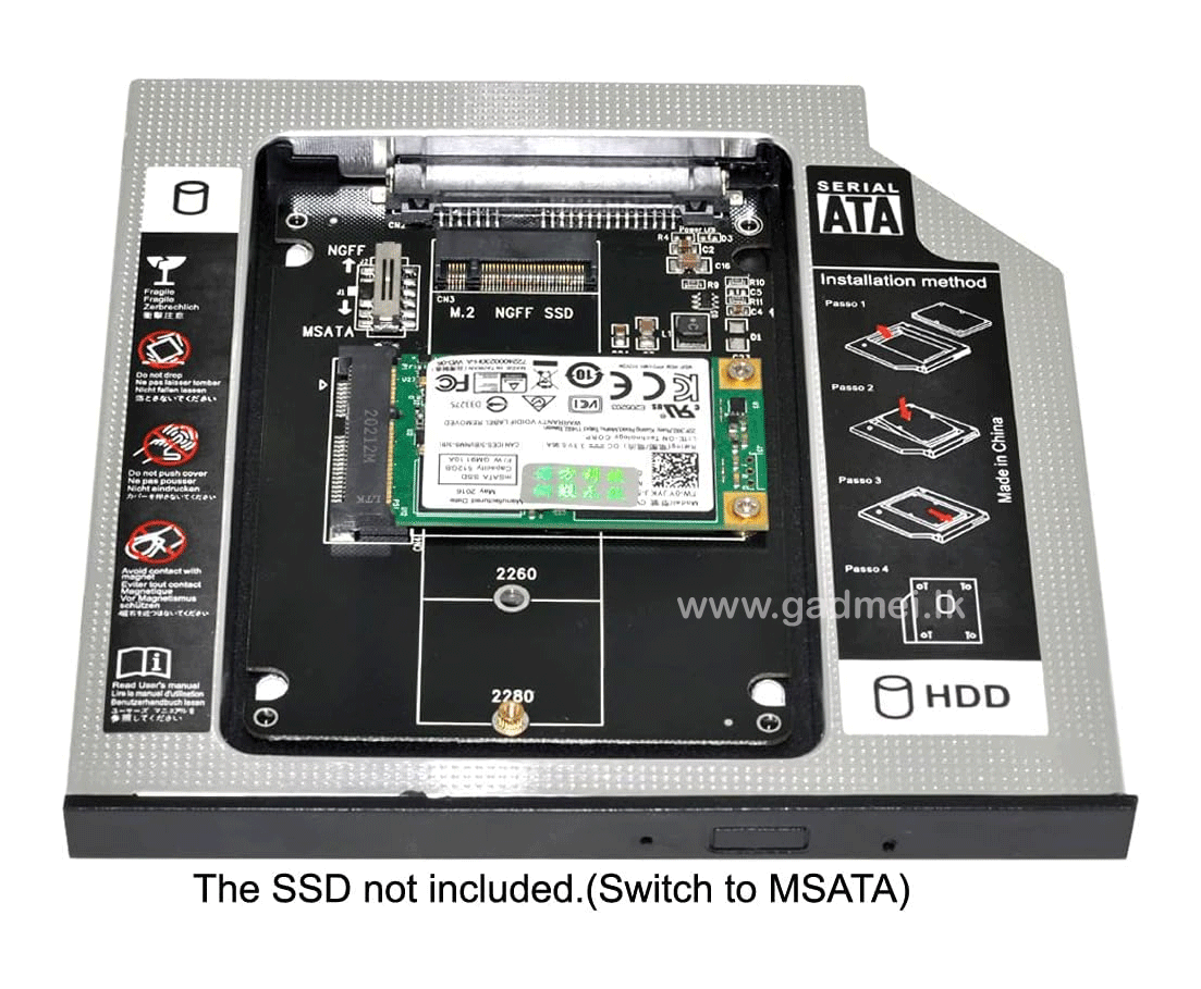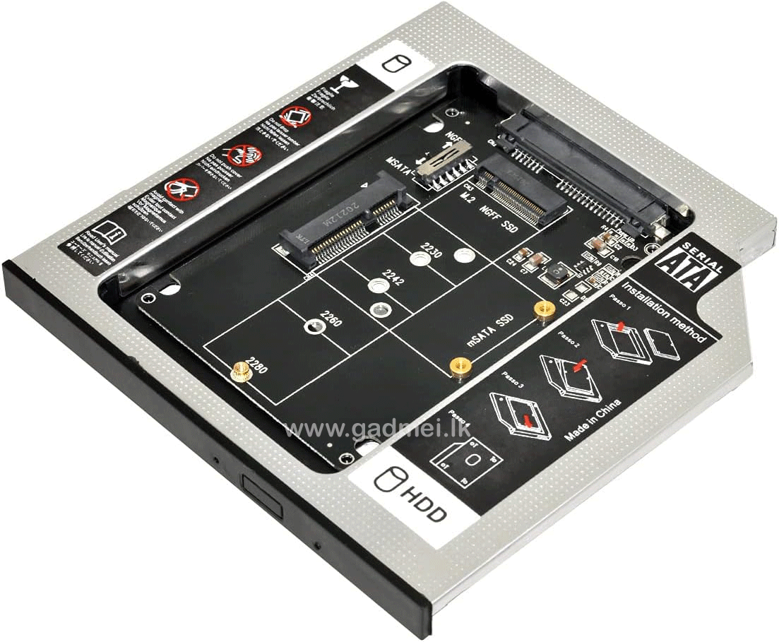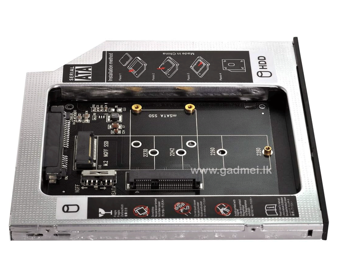 MSATA NGFF B/M-Key SSD to Slimline SATA 13Pin Caddy Case for 9.5mm Universal Laptop CD/DVD-ROM Optical Bay