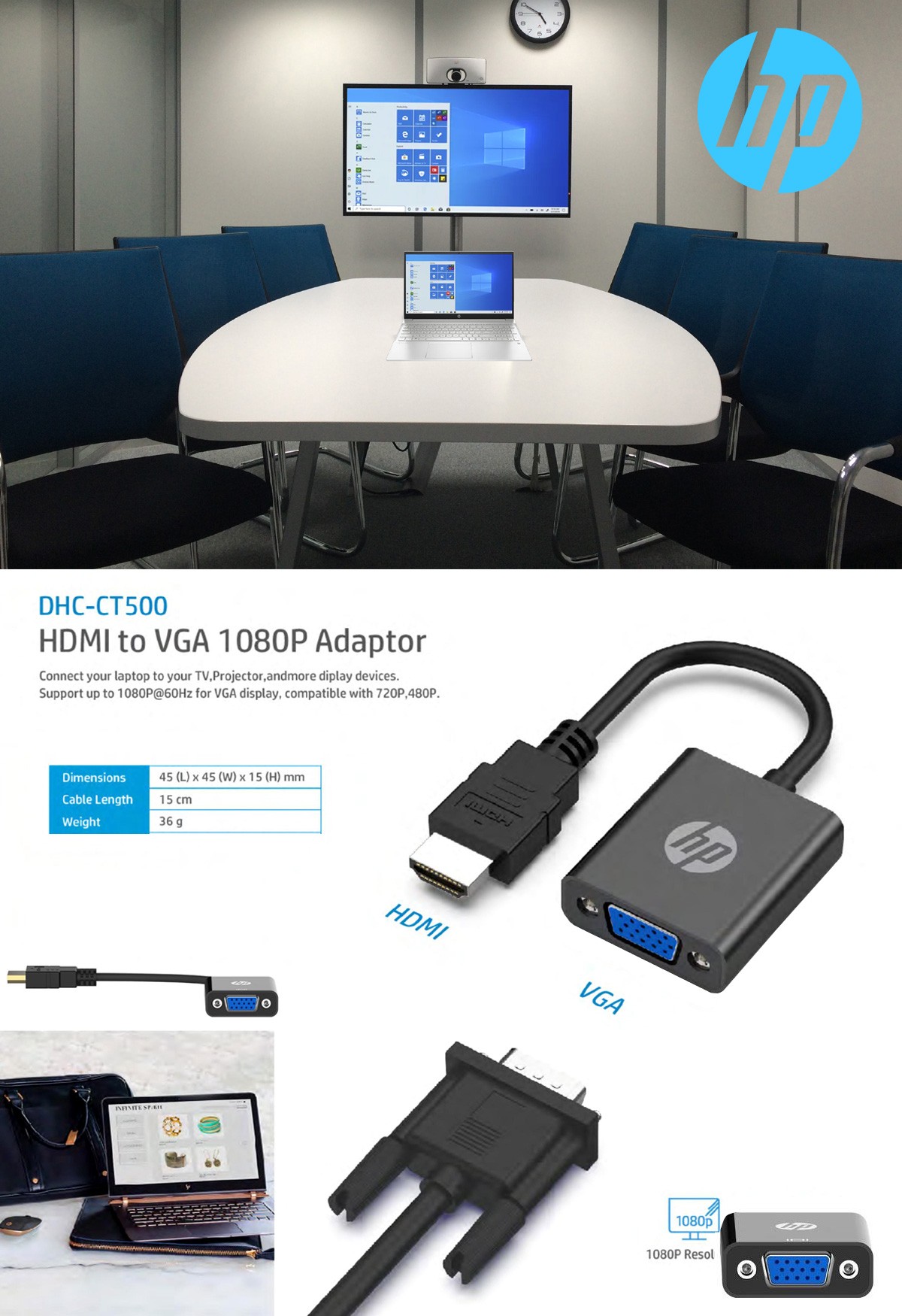 Connect laptop or desktop pc to projector etc.,