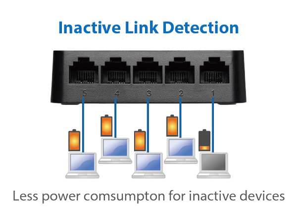 When a network device is shut down and/or an inactive link is detected, the power usage adjustment feature automatically reduces power usage. The switch’s power consumption will be dynamically adjusted according to the link status and the number of active network devices.