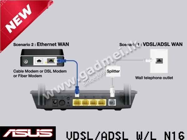 The ASUS DSL-N16 ADSL/VDSL wireless modem router is stylish, truly multi-functional, and has reliable performance. It can connect to the internet using either the Ethernet or DSL WAN (Wide Area Network) ports, allowing customers to use it as a either a modem router or a standalone wireless router. Compatible with ADSL2/2+, ADSL, VDSL2, fiber and cable services.